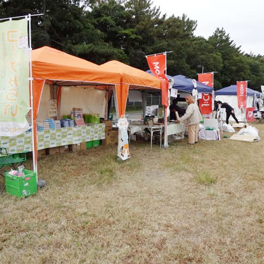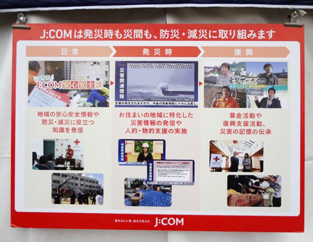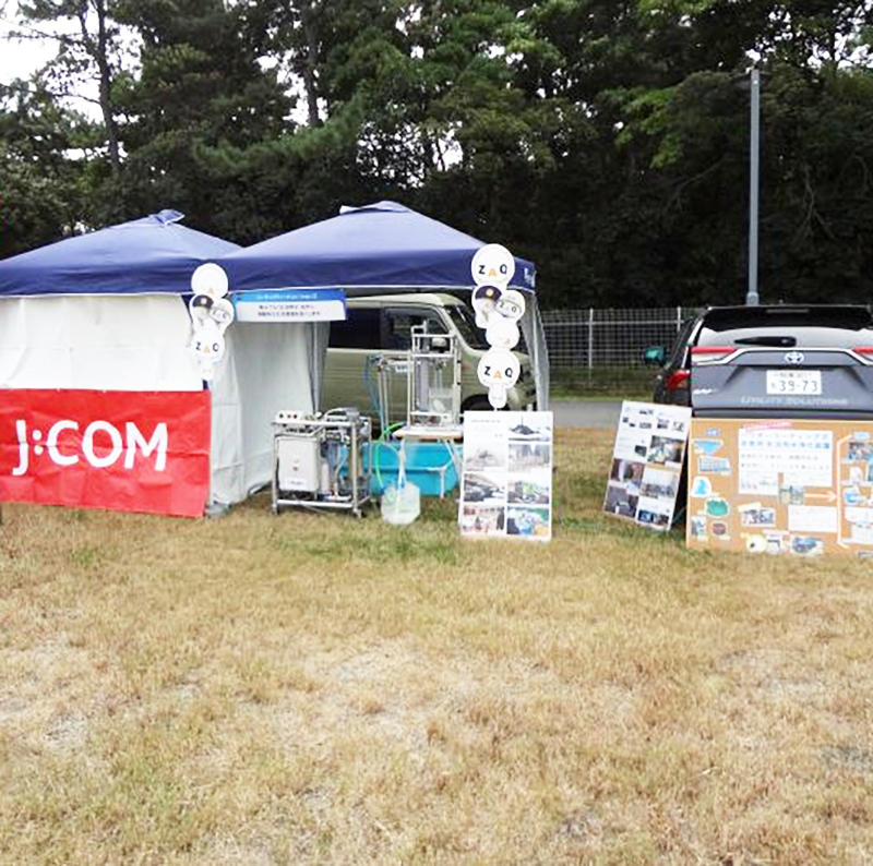 私たちのイベントはその横で、防災×キャンプ的なコラボレーションで行われ、J:COMさんの防災減災ブースの一角に出させていただきました。