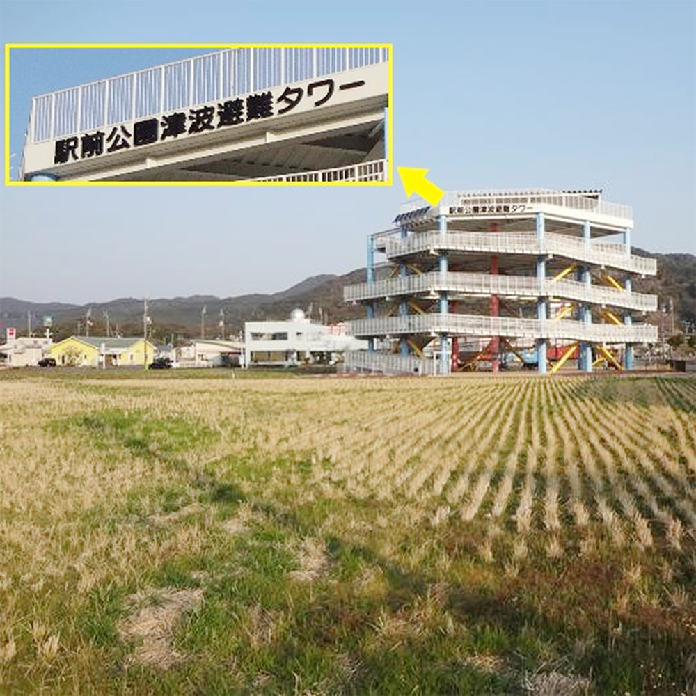 駅の前には「津波避難タワー」があります。体験のために登ってみました。