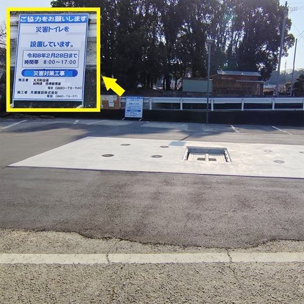 コンクリートの下には大きなタンクがあり、通常は扉からマンホールトイレなどの備蓄品を収納しています。