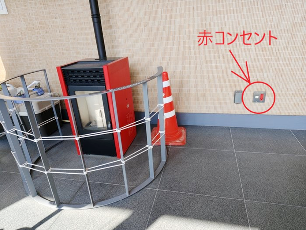 庁内には、非常用の暖房器具や”赤コンセント”もありました!